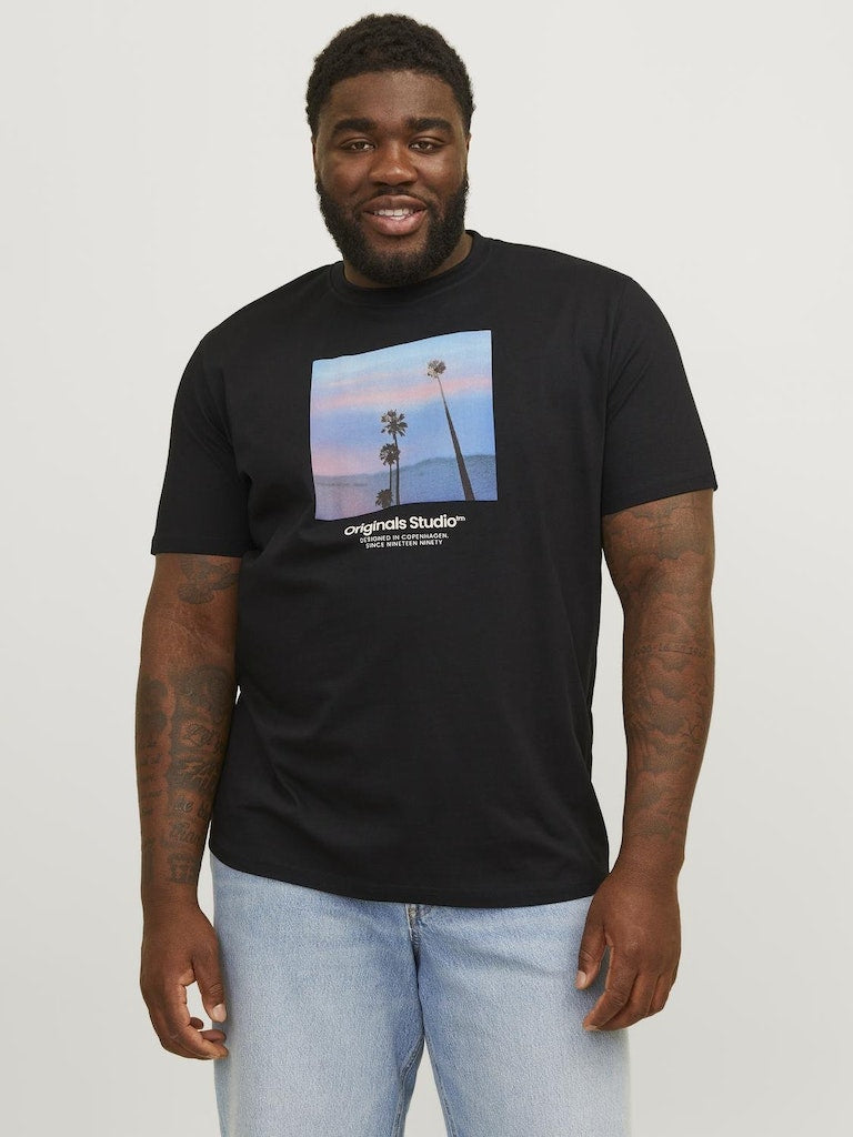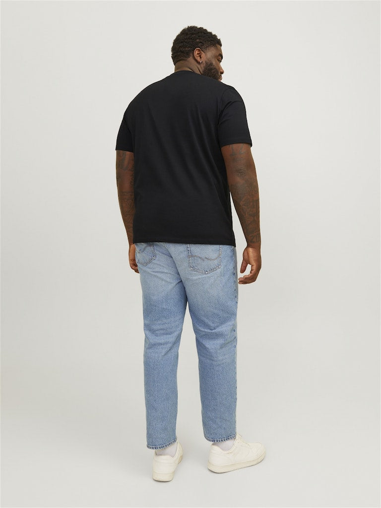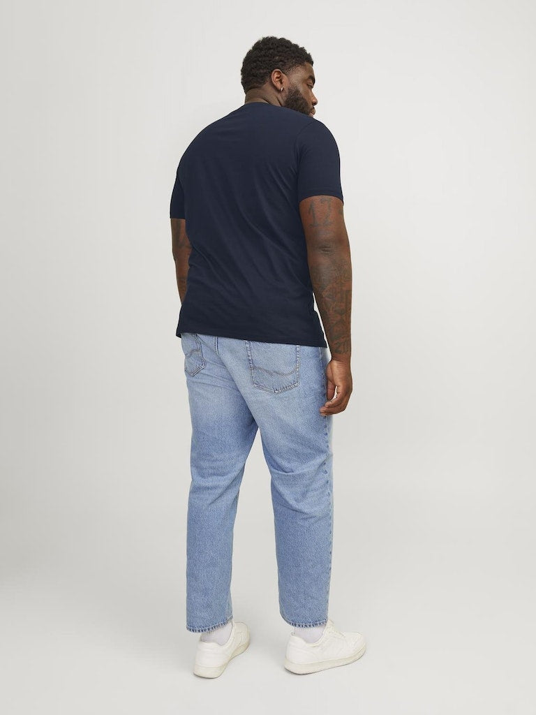 Τ-SHIRT , ΜΕ ΣΤΡΟΓΓΥΛΗ ΛΑΙΜΟΚΟΨΗ ,100% ΒΑΜΒΑΚΙ , ΜΕ ΤΟ LOGO ΤΟΥ BRAND ΕΜΠΡΟΣ , RELAXED FIT , PLUS SIZE